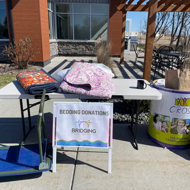 Bring new or gently used fitted sheets, comforters, & bed-sized blankets to help Bridging empower people to thrive in their homes while transitioning from homelessness and poverty.